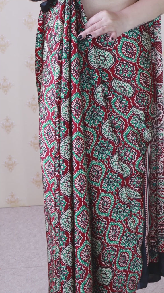 New ajrakh modal Silk Ajrakh Fancy pallu saree