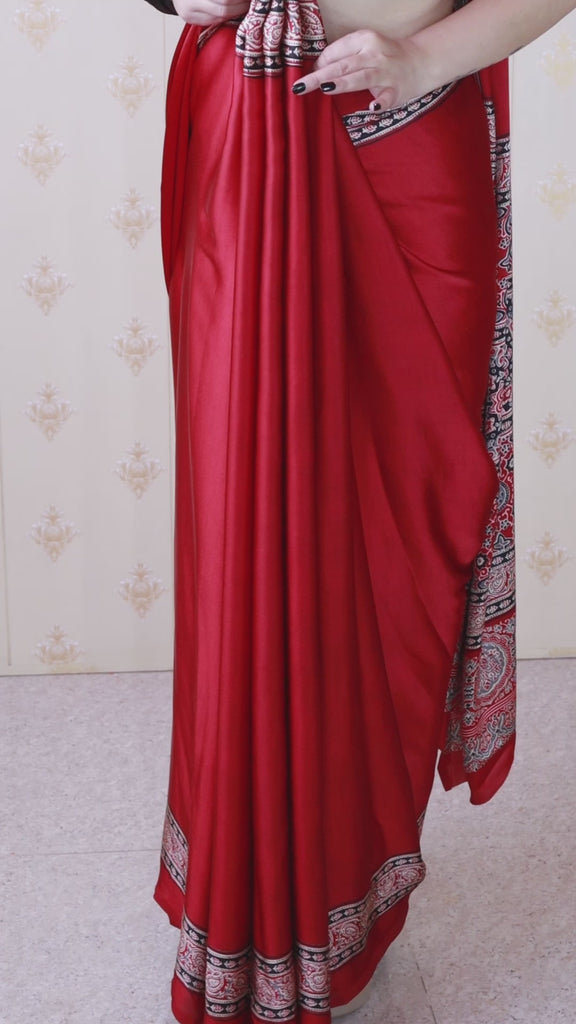 Elevate your wardrobe with The Modal Silk Ajrakh Natural Printed Saree. Crafted from luxurious red modal silk, this saree features exquisite Ajrakh natural prints that blend traditional artistry with contemporary style. Its lightweight fabric ensures effortless draping, allowing you to achieve a polished look quickly and comfortably. Perfect for those who appreciate expert craftsmanship and modern elegance in one graceful ensemble.